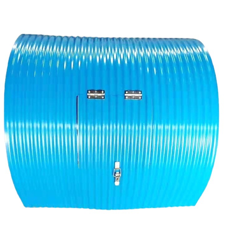 防雨罩分兩種,固定罩和開閉式罩均由鍍鋅瓦楞鋼板或彩色涂層鋼板制成(訂貨時(shí)須指明),一般每8個罩位中設(shè)7個固定罩、1個開閉式罩,也可兩種罩交替排列。安裝時(shí),將開閉式罩壓在左右兩個相鄰的固定式罩上,其重合長度為一個波距或兩個波距。注意將開閉式罩有鉸鏈的一側(cè)置于輸送機(jī)非通行邊,而將有鎖扣的一側(cè)置于輸送機(jī)通行邊作為固定輸送機(jī)罩的骨架為Z型鋼,其長度與輸送機(jī)罩安裝長度相等。將Z型鋼焊接在輸送機(jī)架的兩側(cè)槽鋼或小角鋼上。將防雨罩從機(jī)架的一端向另一端安裝,安裝時(shí)防雨罩上嚴(yán)禁站人,勿用力撞擊或敲打。用自攻釘或鉤釘將防雨罩固定在Z型鋼上(矩形管上),每片不少4個固定點(diǎn)。每隔10片也可安裝1片觀察窗罩,方便維修或查看。